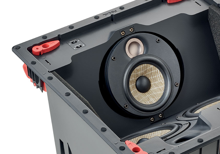With this LCR hi-fi speaker (left, center and right), you can create a home theater installation without compromise. Ceiling integration is easy and ideal, especially where there’s no rear wall, and its adjustable turntable allows precise adjustment to the listening position. It incorporates exclusive Focal technologies, such as the Flax diaphragm and the aluminum/magnesium inverted-dome tweeter, for a deep, homogeneous sound in the room and high hi-fi quality.