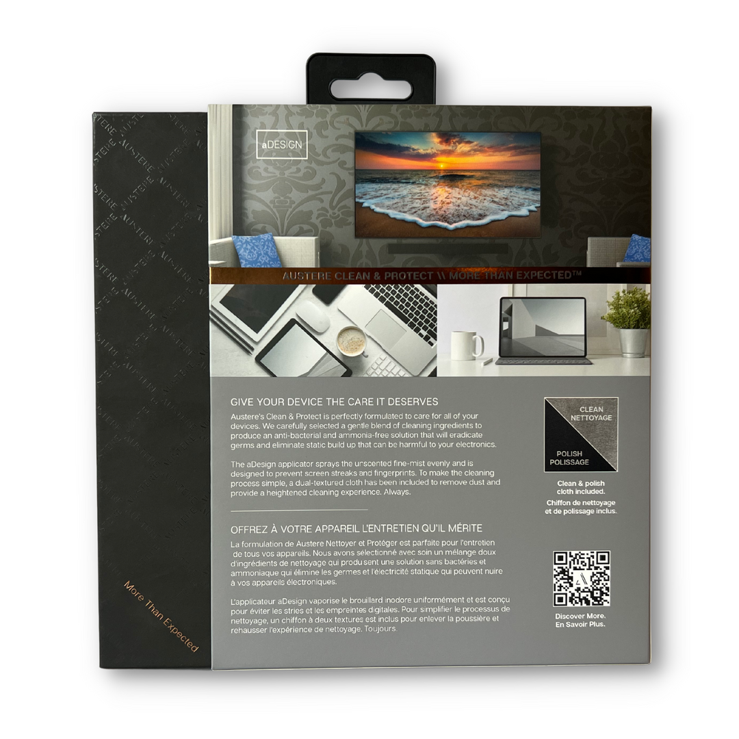 Austere V Series professional quality display cleaner is perfectly formulated to care for all of your devices. Designed in the USA, Austere products naturally coexist as part of an entire home ecosystem. Always.