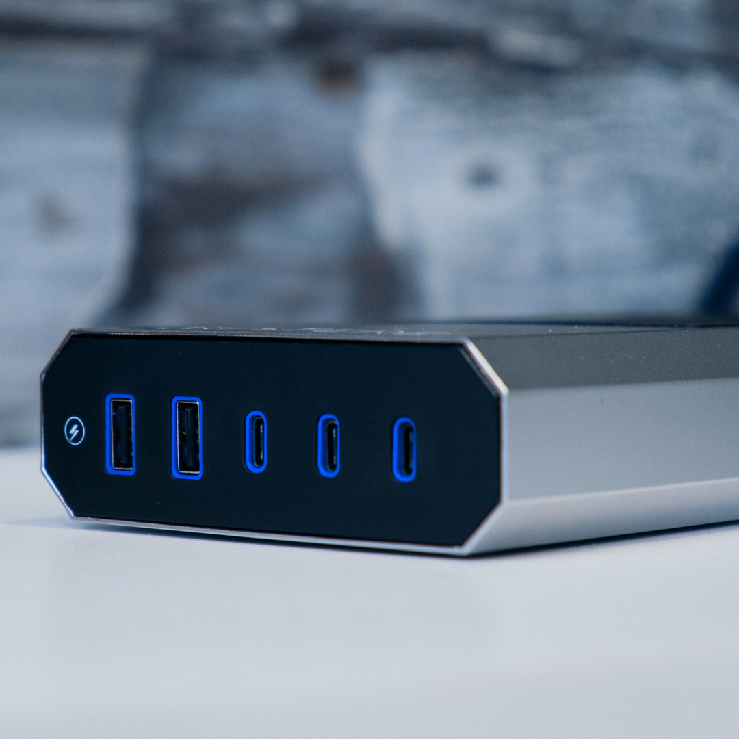Rapid Charge \\ The OmniPort USB features five rapid charging ports (2 USB-A; 3 USB-C) to each deliver up to 2.4 Amps of charging power while protecting all of your low-voltage devices.