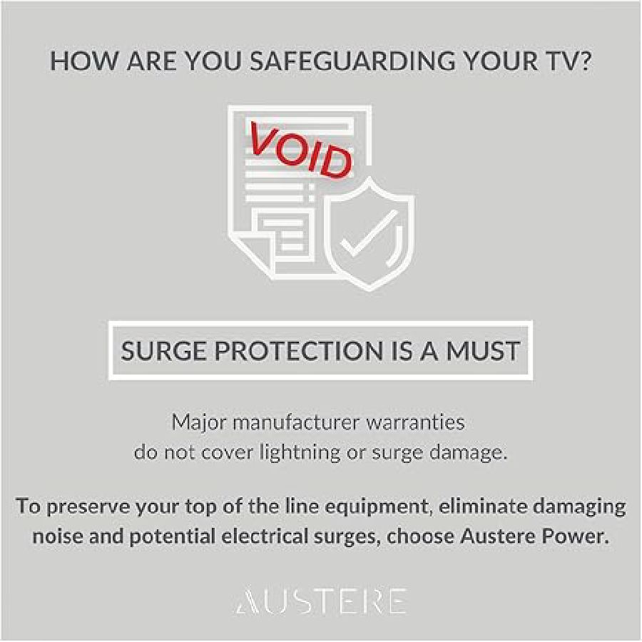 Austere Power surge protectors are designed to ensure that entertainment systems are protected from the potential harm caused by electrical spikes and surges. Not to mention, our PureFiltration technology cleans noise and artifacts for optimal video and audio.