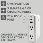 Rapid Charge \\ There are three OmniPort USB rapid charging ports: 1 USB-C PD 20W, 1 USB-C, and 1 USB-A sharing 2.4 Amps of charging power while protecting all your low voltage devices. Power Delivery (PD) is the quickest, most efficient way to charge a compatible device. Unlike other power charging options, PD can charge a smartphone at up to 20 volts for the fastest possible charge. Our smart ports are designed to minimize charging time for your electronics such as cellphones and any handheld device that charges via USB.