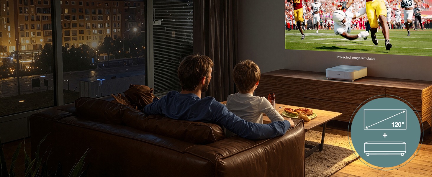 - Immersive Picture — Ultra short throw design delivers a theater-like display up to 120″