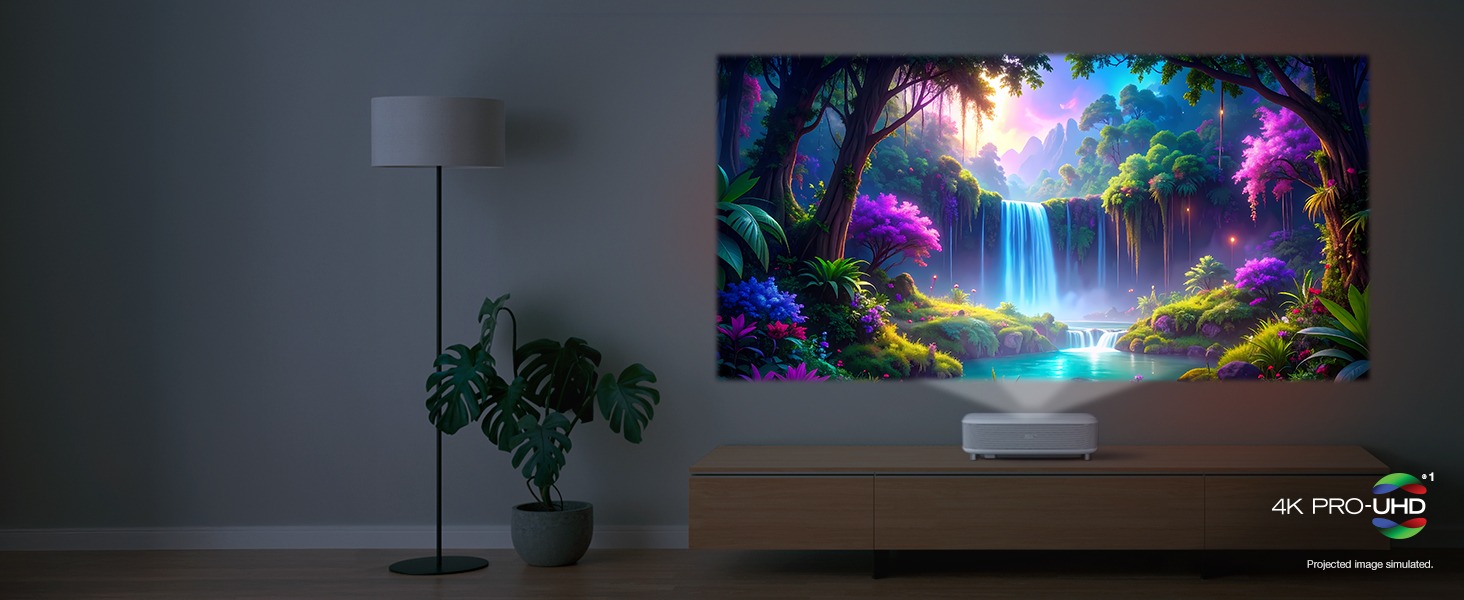 Transform your room into a cinematic escape with the Lifestudio™ Grand Ultra Short Throw Laser Projector. Designed to deliver stunning visuals, powerful sound and seamless streaming—all in one sleek, compact device.