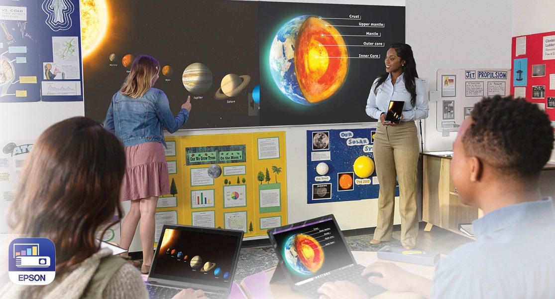 - Connect and cast from up to 50 devices3 — Free downloadable Epson iProjection™ software makes it easy to cast wirelessly from Chromebooks, iOS® and Android™ devices, Mac® computers and PCs3; with moderator feature5, teachers never lose control of the displayed content