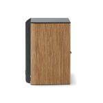 The loudspeaker can be placed directly where you want it, or on a dedicated stand (optional). Its elegant finishes (Black High, Prime Walnut and Moss Green High Gloss) combine with a leather-effect front panel for a refined aesthetic signature.