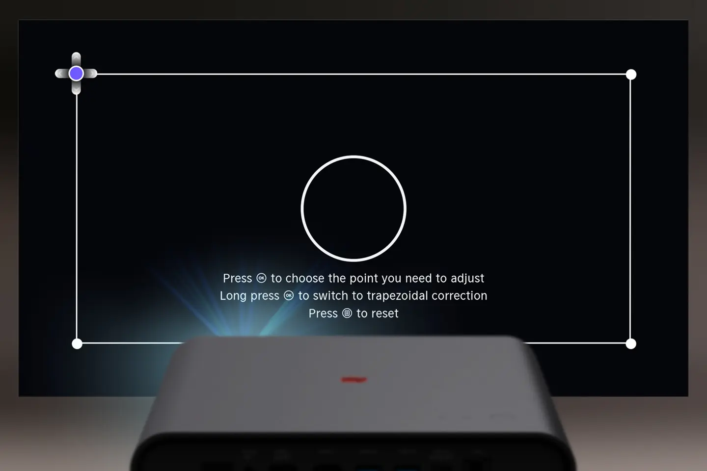 With its automatic image alignment, the Leica Cine Play 1 offers a smart solution for effortlessly adjusting projections within a white screen with a black frame. The innovative technology recognises the frame and automatically adjusts the picture to it. This saves time and ensures that your image is always optimally positioned on a screen, even if the projector is not placed right in front of it. Furthermore, it is easy to adjust the picture manually via the menu options using the remote control.