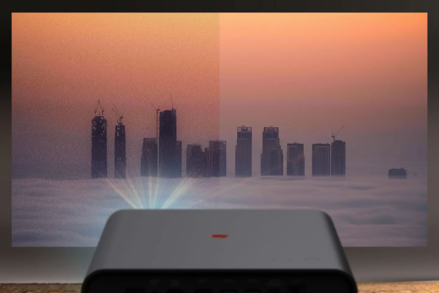 Speckle effect is a physical phenomenon that may arise when using laser light for projection, particularly with high-intensity laser projectors as part of home cinema set-ups. It manifests as a subtle, grainy flicker, particularly on uniform colour surfaces like skies, walls or skin tones. This occurs as a result of the laser light’s high coherence: when it strikes a slightly textured surface like a screen, the overlapping light waves create interference, resulting in light and dark spots. This causes the image to appear inconsistent or to flicker. When speckle is particularly noticeable, it can be distracting, especially during tranquil scenes.