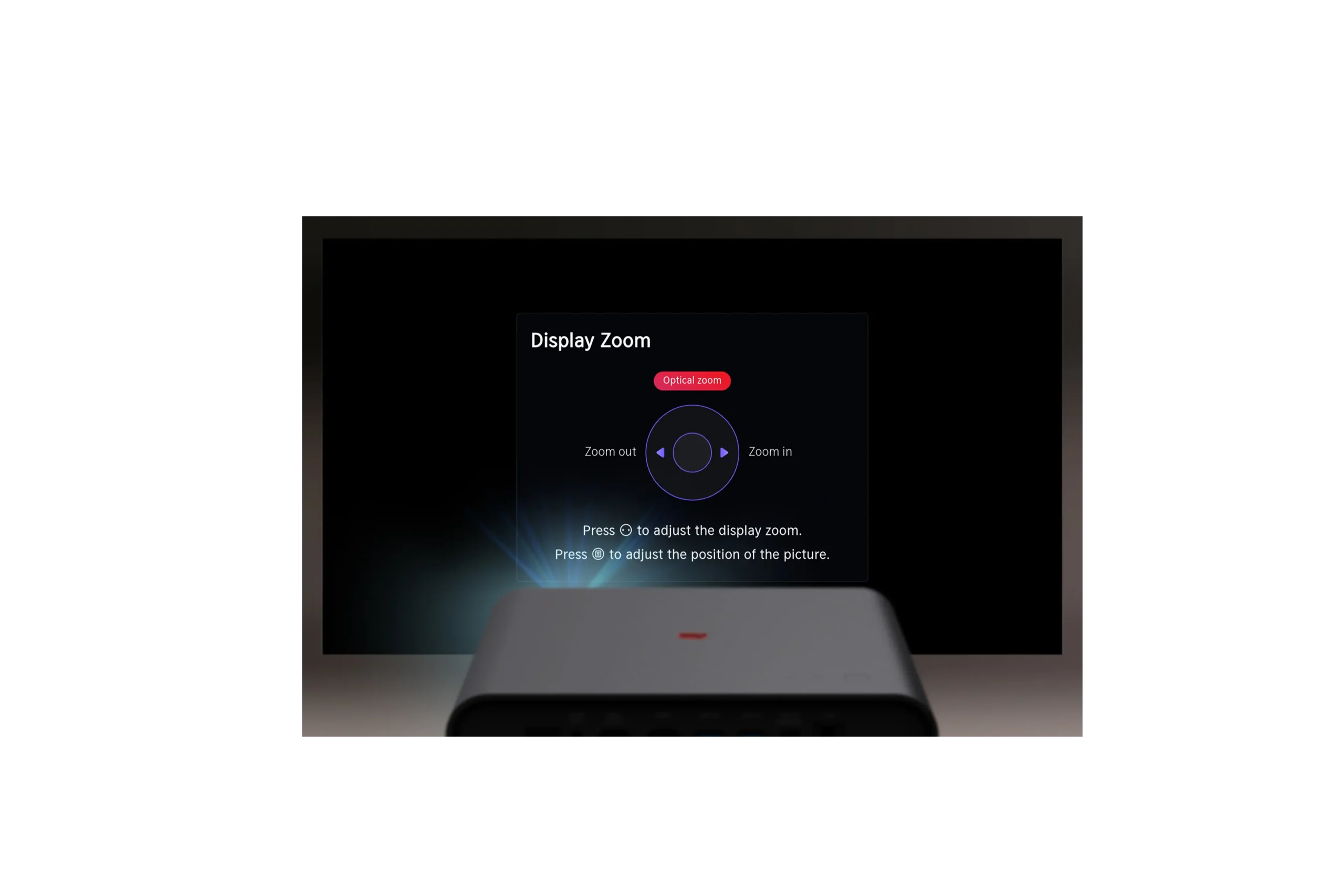 The autofocus feature on the Cine Play 1 automatically adjusts the image to achieve optimum sharpness for perfect playback quality. The navigation buttons on the remote control also allow you to individually readjust the focus.