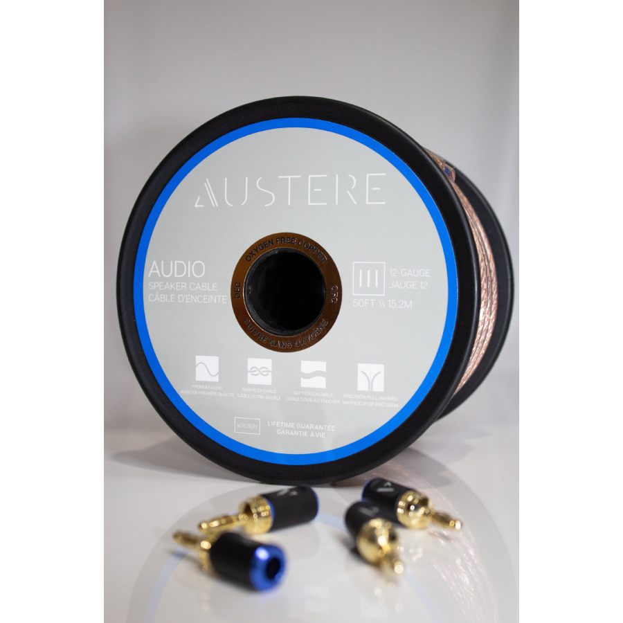 Austere Speaker Cables are built for durability and designed to deliver flawless sound from source to speaker. Featuring fine-stranded ultra-pure copper that’s been bundled to accurately transfer the full range of audio frequencies to your speaker for a lifelike sound. And with highs, mids, and lows transferring at the same rate, your music, media, and games have never sounded more pristine.
