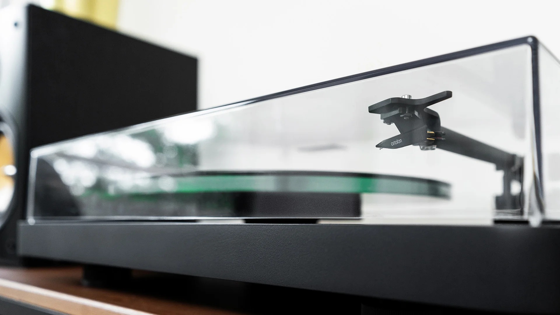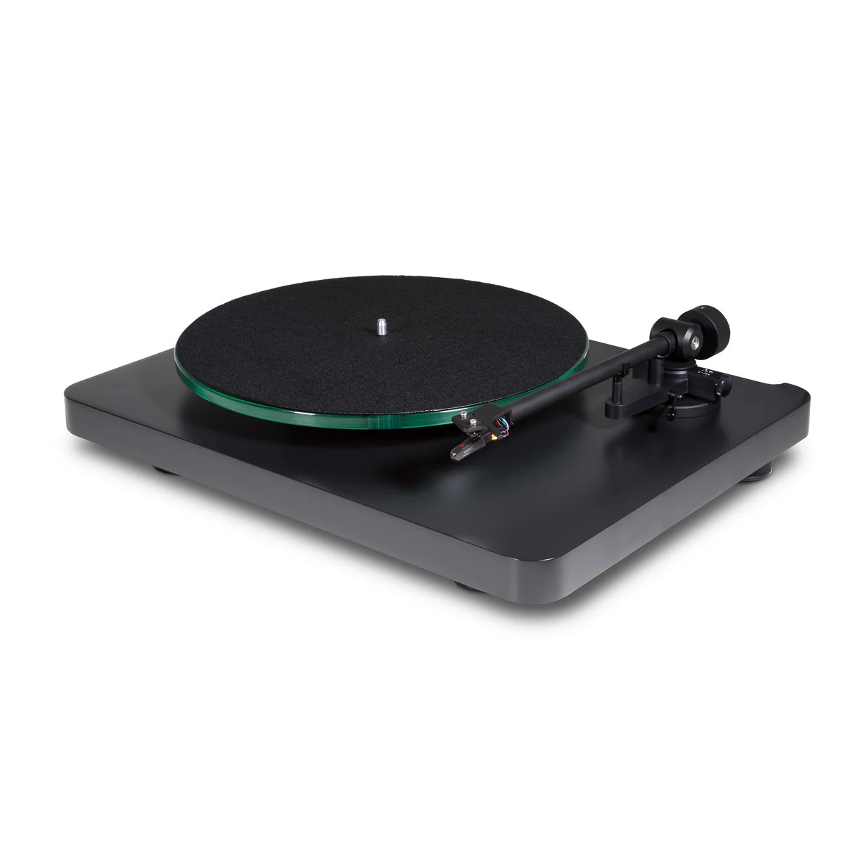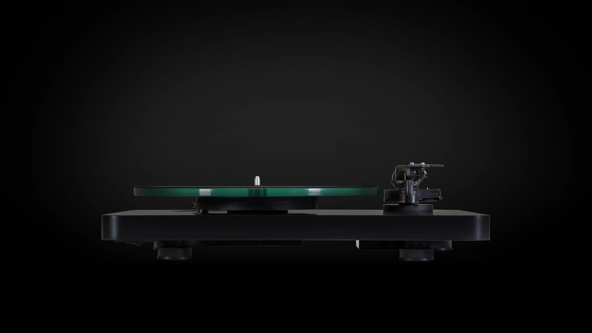 The MDF plinth, glass platter, and low-resonance design reduce vibration during playback.