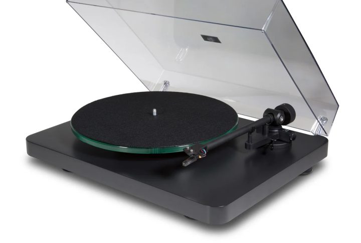 - Belt-drive turntable with electronic speed control