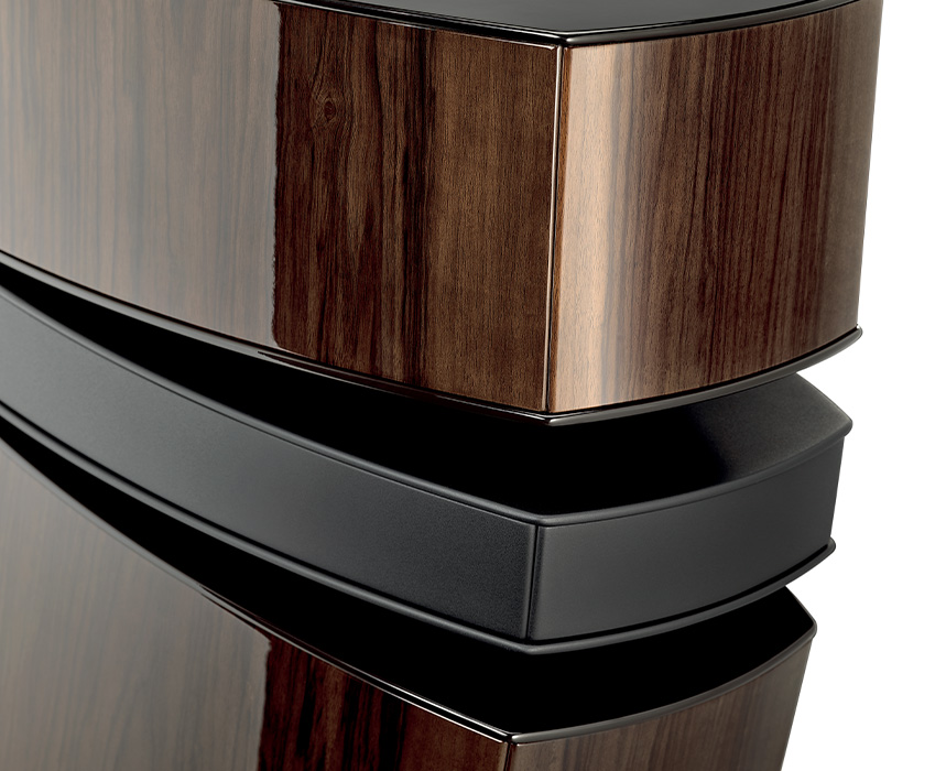 Each loudspeaker is integrated into a separate cabinet. These cabinets form the spectacular backbone of the loudspeaker and enable “Focus Time”, for perfect adjustment of the channels to the listening point, for the ultimate sound experience.
