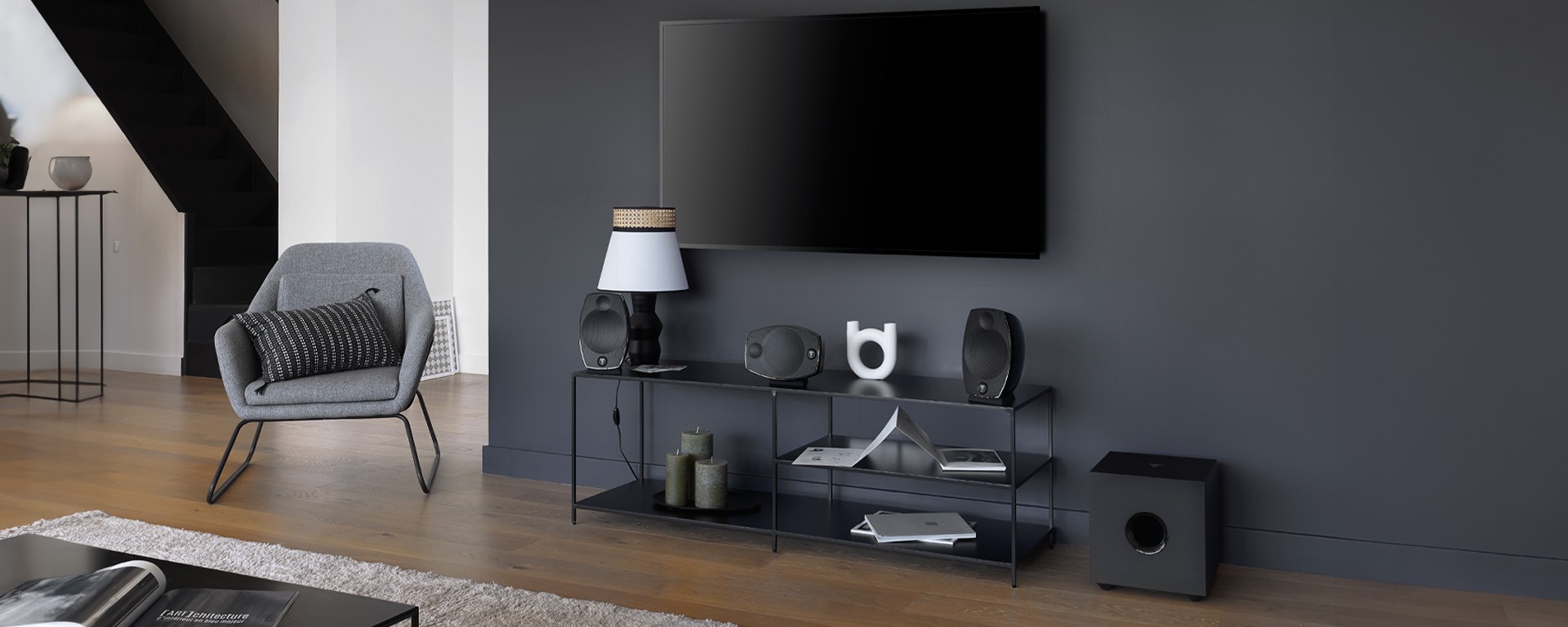 Available in Black High Gloss finish, this package is as elegant as it is discreet. Its clean, uncluttered lines discreetly enhance the style of any interior. The ABS material and matte-lacquer finish combine reflections with material effects. The loudspeaker is supplied with a flexible base allowing it to be easily oriented horizontally or vertically, as you wish.
