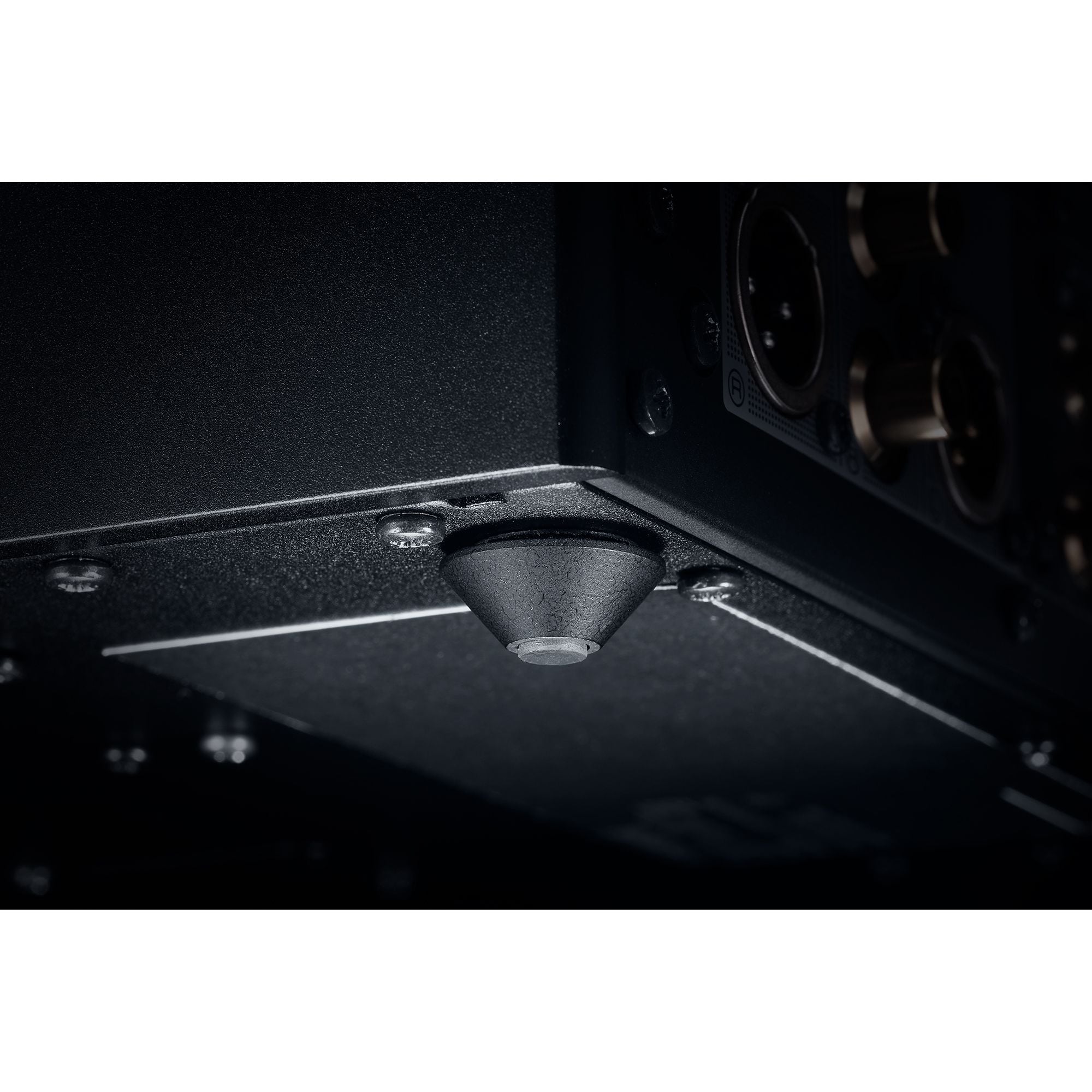 The HA-L7A’s distinct L shape is supported by five conical steel feet at each corner of the chassis, with dampers cushioned between each foot and the bottom panel that effectively suppress any vibration, allowing firm and stable support on just about any surface. Combined with the massive 11.7 lb body, all elements work together to effectively eliminate unwanted vibrations while achieving focused and realistic sound reproduction.